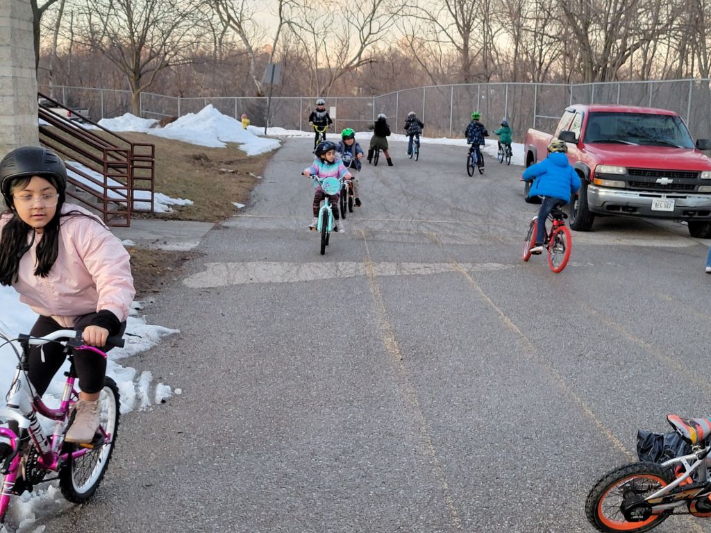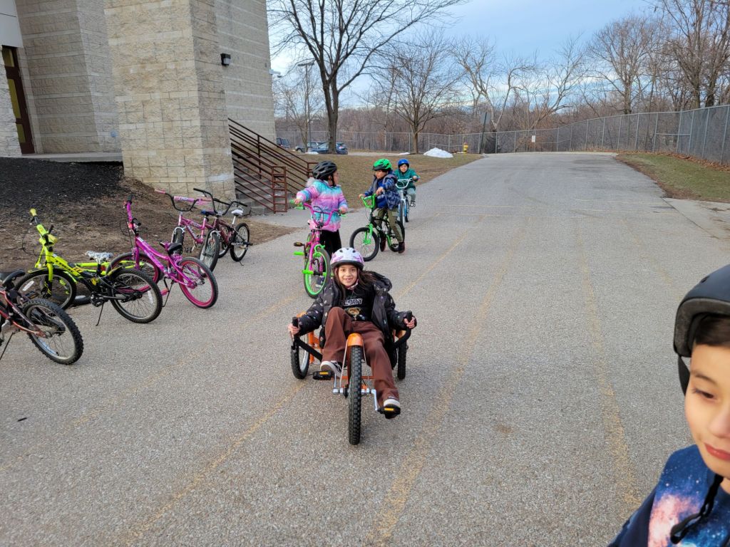 Teaching kids how to work on bikes, beginning with the A.B.C.’s, how to use pumps, tools, riding skills, and safety. And sometime, just how to ride. Community service and gifting.