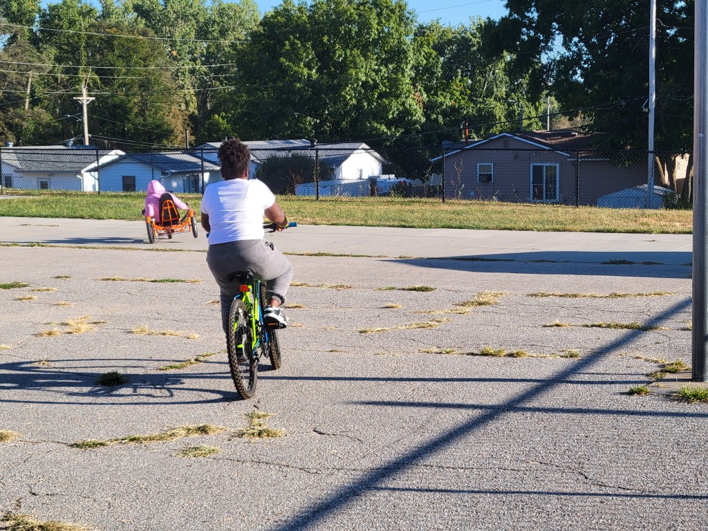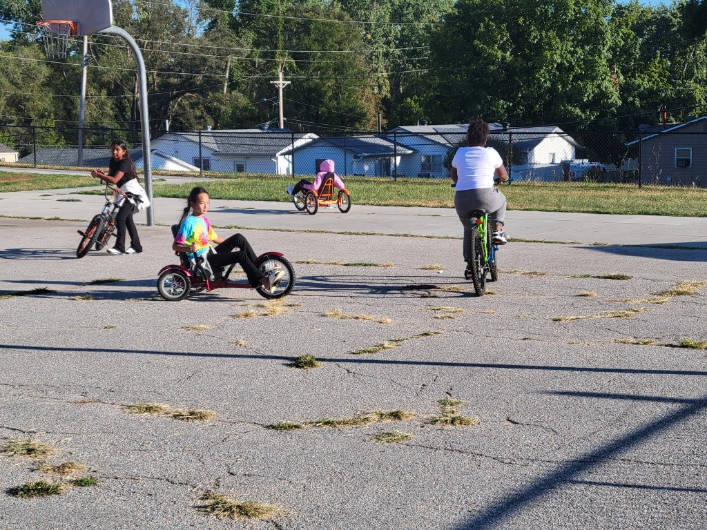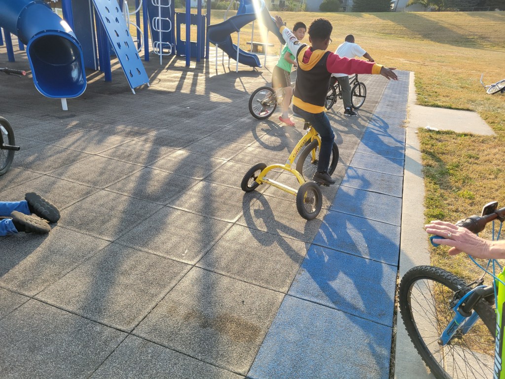 Teaching kids how to work on bikes, beginning with the A.B.C.’s, how to use pumps, tools, riding skills, and safety. And sometime, just how to ride. Community service and gifting.